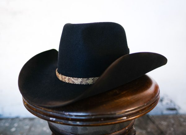 Description: This hat reminds us of something you would see in the 70’s and 80’s. Back when late night smokey pool hall was the place to be! A nice tall crown, some rolled sides and a bad ass rattlesnake band.